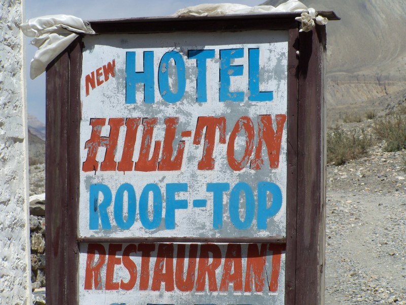 Der Weg führte auf einem Weg teils neben dem Kali-Gandaki Tal, teilweise im Flussbett selbst in einer guten Gehstunde nach Eklebhatti. Lunchzeit war gekommen und für einen echten Boccuse gab es nur EIN standesgemäßes Etablissement in dem Örtchen, wo das Essen eingenommen werden konnte: das Hilton ! Paris war offensichtlich in der Küche beschäftigt, denn ich bekam sie nicht zu Gesicht und für “Nickys-Pullover” war es auch noch zu warm !