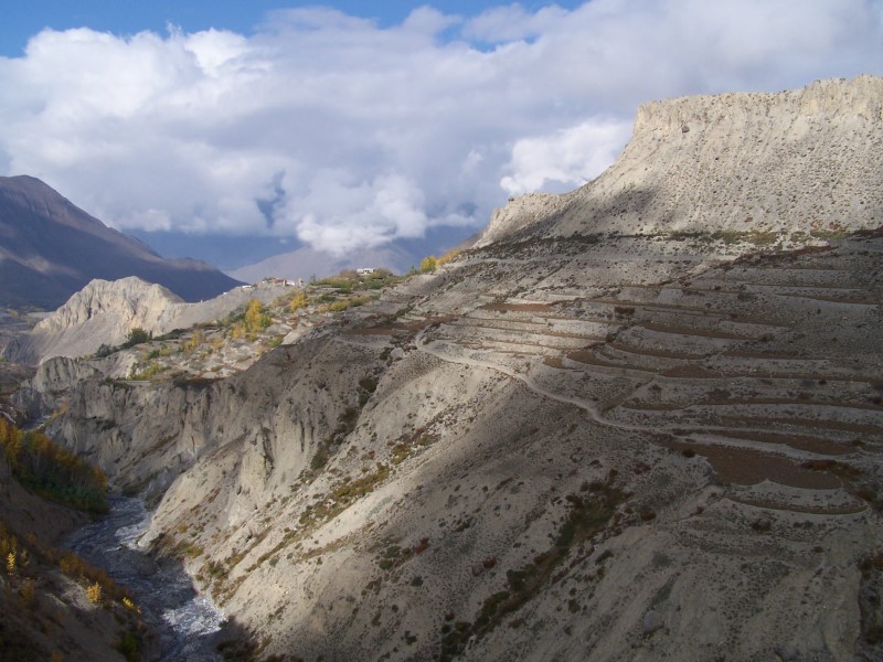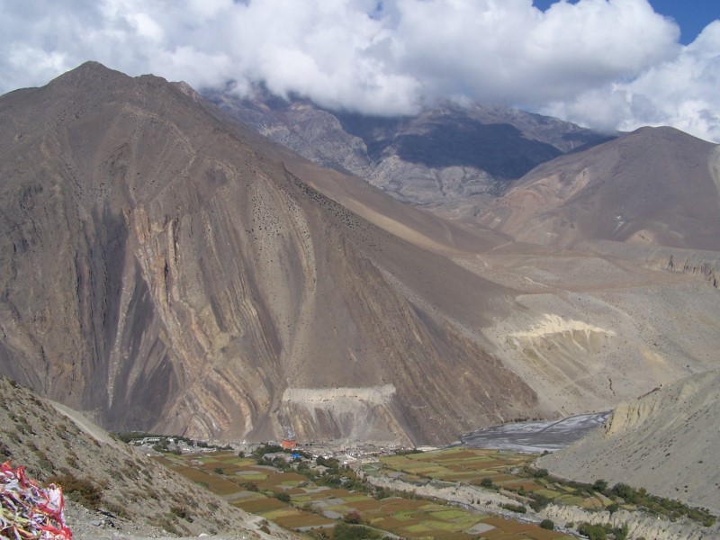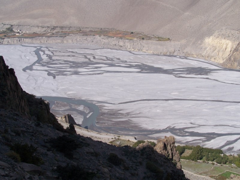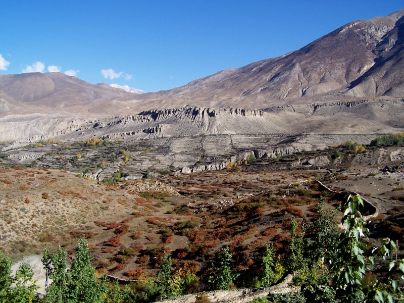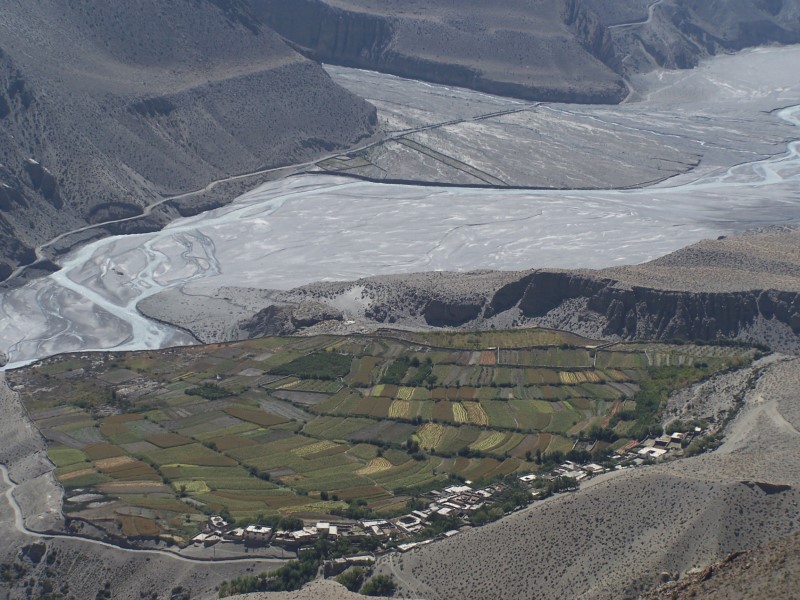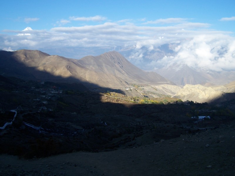 Am Freitag den 13.10, dem insgesamt 9. Trekkingtag bin ich in einem Rutsch von Muktinath nach Jomsom abgestiegen. Um den üblen Kali-Gandaki Winden, die ab dem späten Vormittag aufkommen auszuweichen, habe ich kaum Pausen gemacht und Jomsom bereits um 12 h Mittag erreicht.