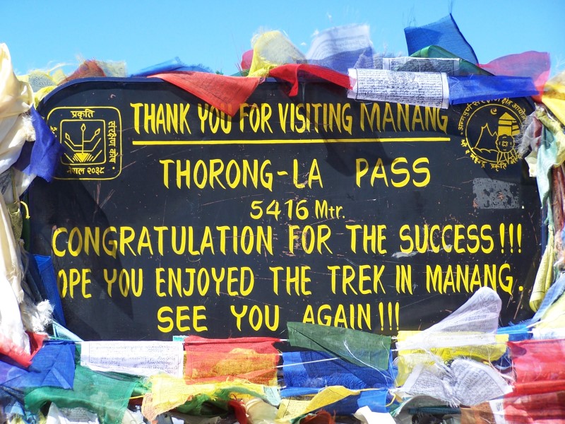 Das offizielle Schild am Thorong-La Thorungtse vom Thorong-La “Beweisbild” am Thorong-La