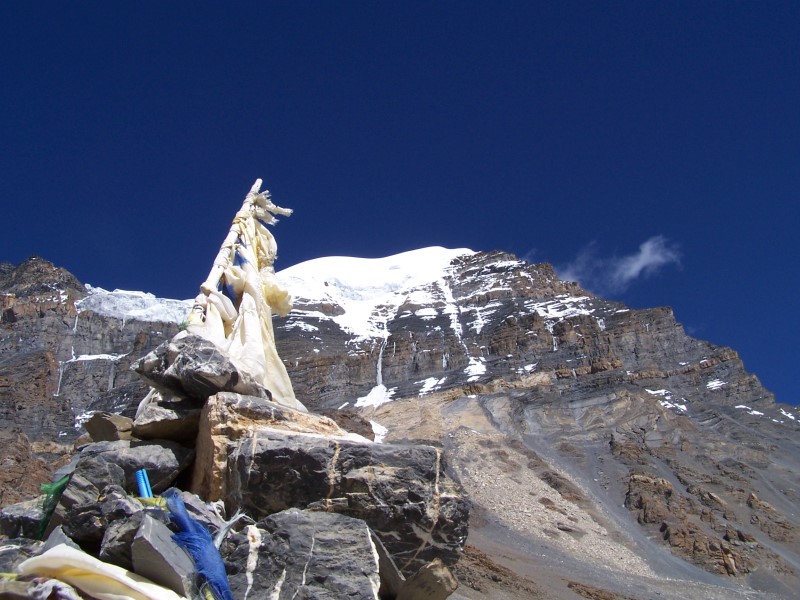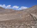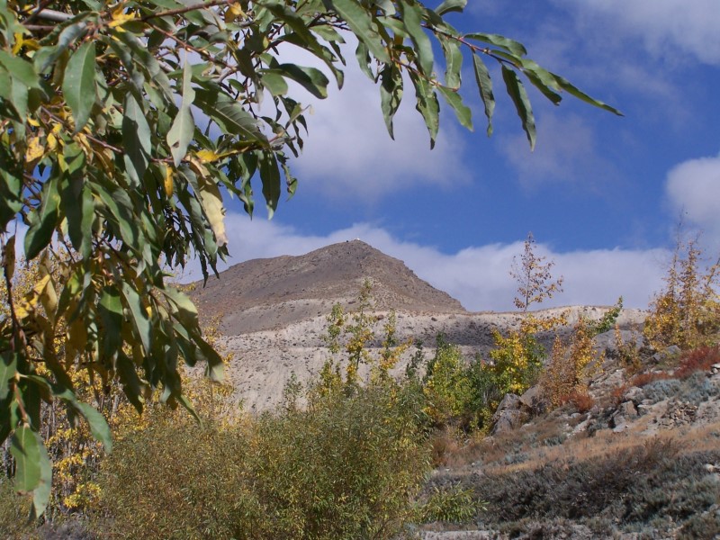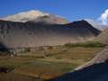 In der Dorfmitte zweigt ein Weg rechts (nördlich) ab, der zunächst in einer Art Schlucht empor führt. Es geht dann steiler und staubiger aufwärts und am Ende des Anstiegs wird eine Hochfläche erreicht, von wo aus der Hügel mit Chorten gut sichtbar ist. Weglos bin ich dann, zuletzt mit etwas Kletterei auf den Gipfel gestiegen (Höhe 3930 m; Aufstiegszeit 1.15 h). Natürlich war wieder außer mir niemand oben am Gipfel.