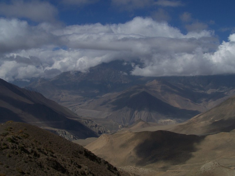 Blick vom Thorong-La auf die Manangseite Blick vom Thorong-La zum Yakawakang
