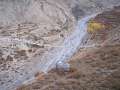 Für den fünften und letzten Tag meines Aufenhaltes in Muktinath suchte ich mir wieder ein einfacheres Ziel. Hinter Jhong ragt ein Hügel aus der Ebene, der mit einem weissen Chorten gekrönt ist. Der Weg dorthin folgte zunächst dem Weg, den ich schon Richtung Gyu-La eingeschlagen hatte. Nach Überquerung der Hängebrücke führt der Weg dann allerdings direkt zur Ortschaft Jhong.