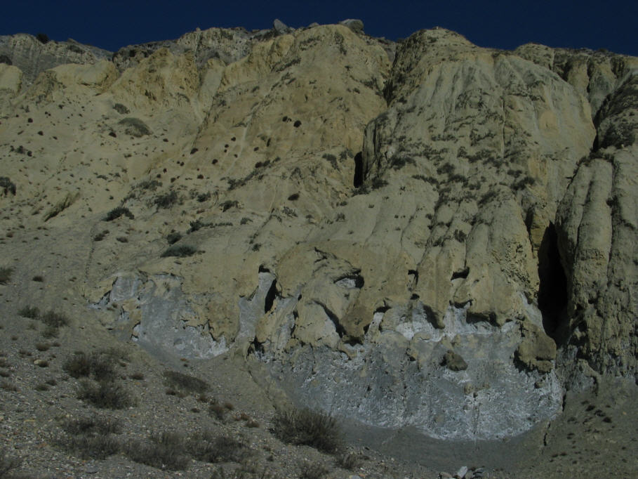 Auf dem Weg von Jomsom nach Marpha, südwärts blickend Felsformation bei Jomsom