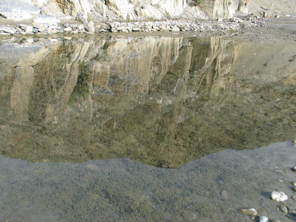 Am nächsten Morgen war es, eigentlich ungewöhnlich, schon nicht ganz wolkenlos. Um beim weiteren Aufstieg Gewicht zu sparen ersann ich zwei Möglichkeiten: die Erste war, den bis dato angefallenen Müll und eine Tagesration an Lebensmitteln hier bei dem Camp zu deponieren. Da ich sowieso den selben Weg wieder zurückgehen musste, wäre es überflüssig, nicht notwendige Dinge mit nach oben zu schleppen. Also packte ich alles in eine Plastiktüte und diese in eine Jutetasche und versteckte diese unter einigen Steinen ca. 50 Meter vom Lager entfernt. Die zweite Möglichkeit war, die Schuhe zu wechseln und anstatt in den Salomon Trekkingschuhen zu gehen, die Schalenschuhe auszupacken. Damit sparte ich 2 kg ! Allerdings “erkaufte” ich mir die Gewichtsersparnis mit Blasen an den Füssen, denn bereits nach einer halben Stunde spürte ich Druckstellen an den Fersen. Klassisches Fersengeld !!