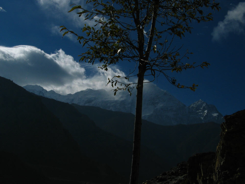Das Wetter war bewölkt und wie ich bei einem nächtlichen “Ausflug” ins Freie feststellte, klarte es auch entgegen den “üblichen Gepflogenheiten” diesmal nachts nicht auf. So war das Wetter am nächsten Morgen nicht ideal geeignet um zum Mesokantu-La hinaufzusteigen, um die tolle Aussicht zu geniessen. Da dies aber mit der Hauptgrund für die Wanderung gewesen wäre, beschloss ich nach kurzer Überlegungszeit den Ausflug ersatzlos zu streichen und noch am selben Tag wieder nach Jomsom abzusteigen. Wie ich später erfuhr, soll der letzte Anstieg zum Pass von dieser Seite sehr steil sein und auch noch teilweise vereist gewesen sein. Vielleicht wäre ich auch überhaupt nicht ganz hinaufgekommen ? Egal, ich hatte eine Entscheidung getroffen.