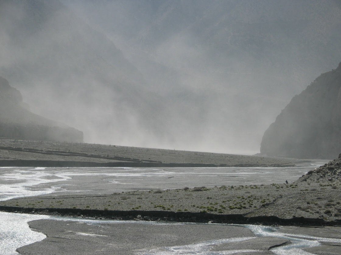 Kali Ghandaki Fluss Im Staubsturm zurück nach Jomsom